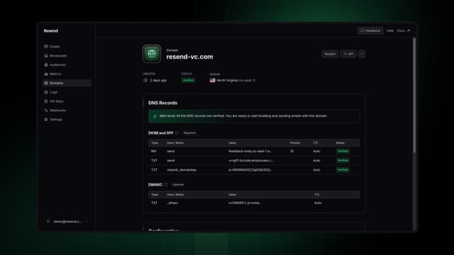 Adding necessary DNS records in Vercel lets you: 1) send emails with your domain using Resend 2) ensure your emails actually land in inboxes.